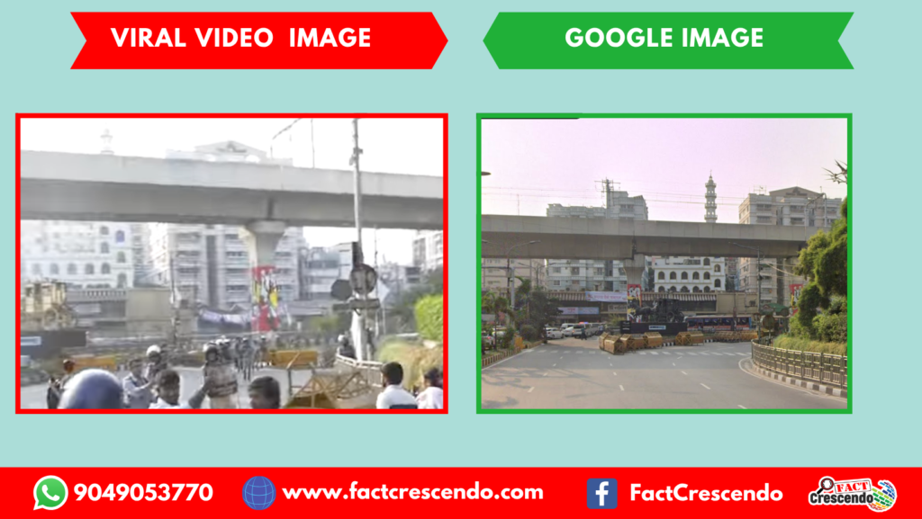 वायरल वीडियो को और अधिक स्पष्ट करने के लिए हमने गूगल मैप्स के स्ट्रीट व्यू से वायरल वीडियो की जगह का पता लगाया। स्पष्ट हुआ कि इसमें दिख रही सड़क और बिल्डिंग एकदम वैसी है जैसी वायरल वीडियो में नजर आ रही हैं। इससे ये साफ है कि वायरल वीडियो का भारत से कोई संबंध नहीं है।