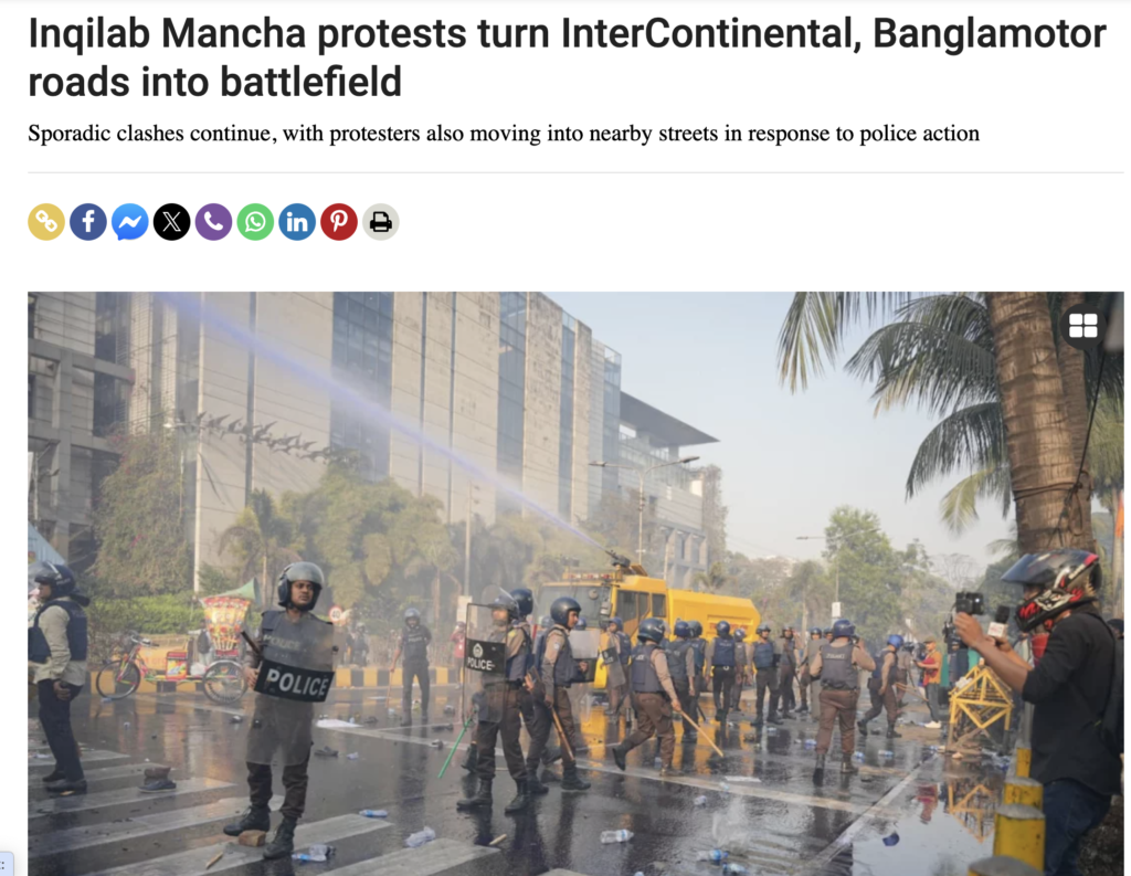 न्यूज एजेंसी ‘एएनआई’ ने भी अपने आधिकारिक एक्स अकाउंट पर 6 फरवरी 2026 को इस प्रदर्शन के वीडियो को शेयर किया था। इंकलाब मंच, उस्मान हादी हत्या मामले में निष्पक्ष जांच की मांग कर रहा था। इस दौरान भीड़ को हटाने के लिए पुलिस ने लाठीचार्ज किया और आंसू गैस का भी इस्तेमाल किया।