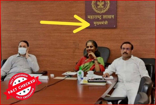 सोशल मीडिया यूजर का दावा है कि एनसीपी के नेता सुप्रिया सुले महाराष्ट्र के मुख्यमंत्री के कुर्सी पर बैठे है। कई उपयोगकर्ता इस तस्वीर को साझा करते हुए सुप्रिया सुले पर तंज कस रहे है।