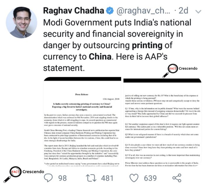 The news of Chinese printing facilities printing Indian currency notes was widespread on various social platforms, eminent politicians & media houses kept sharing the news & their views on why & how Indian Government have given the contract to China for the same.