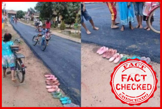 ओडीसा के एक गांव में आजादी के 71 साल बाद जब पहली बार पक्की सड़क बनी तो इन मासूम बच्चों ने सम्मान में चप्पल भी उतार दी.”!!!!|” फोटो में किसी गाँव में एक बिलकुल नई बनाई सड़क दिखती है | कुछ बच्चे सड़क पर नंगे पैर खेल रहे है तथा उनकी चप्पले सड़क के किनारे रखी हुई है | फैक्ट चेक किये जाने तक इस पोस्ट को १००० से ज्यादा प्रतिक्रियाएं मिल चुकी है | आइये जानते है इसकी सच्चाई |