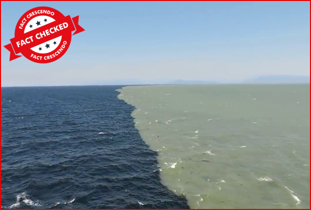वीडियो में एक तरफ नीला पानी है जबकि दूसरी तरफ हरे रंग का पानी नजर आ रहा है। फैक्ट क्रेसैंडो के व्हॉट्सएप हेल्पलाइन नंबर पर यूजर्स ने यह वीडियो भेज कर इसकी सच्चाई पूछी।