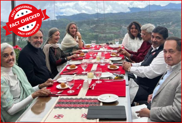 नूपुर शर्मा को फटकार लगाने वाले सुप्रीम कोर्ट के न्यायाधीश जस्टिस सूर्यकांत और जस्टिस जे. बी. पारदीवाला के नाम से एक तस्वीर वायरल हो रही है। इसके साथ दावा किया जा रहा है कि जस्टिस सूर्यकांत और जस्टिस पारदीवाला ‘एनडीटीवी’ के मालिक प्रणय रॉय और ‘द हिंदू’ के मालिक एन. राम के साथ लंच कर रहे थे।
