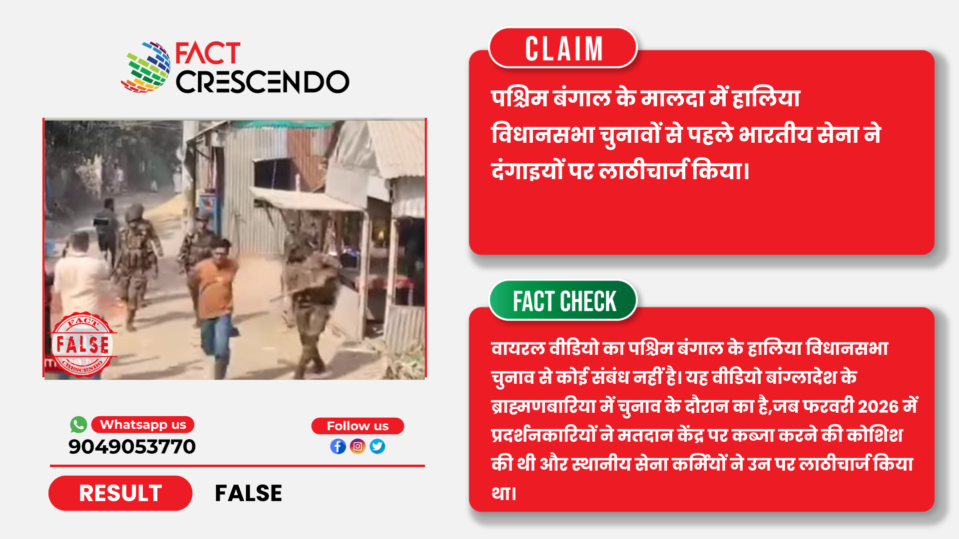 बांग्लादेशी सेना की कार्रवाई का वीडियो मालदा के नाम पर फर्जी भ्रामक दावे से किया जा रहा है शेयर।
