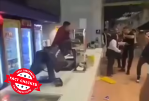 वायरल वीडियो यरुशलम के सिनेमा सिटी मॉल का है, न कि किसी एयरपोर्ट का। पूरी तरह फर्जी है वायरल दावा। मिडिल ईस्ट में जारी तनाव के बीच इंटरनेट पर एक वीडियो वायरल किया जा रहा है। इसमें दिखाई दे रहा है कि कई लोग एक काउंटर के पीछे खड़े कुछ पुरुषों से भिड़ते हुए नजर […]