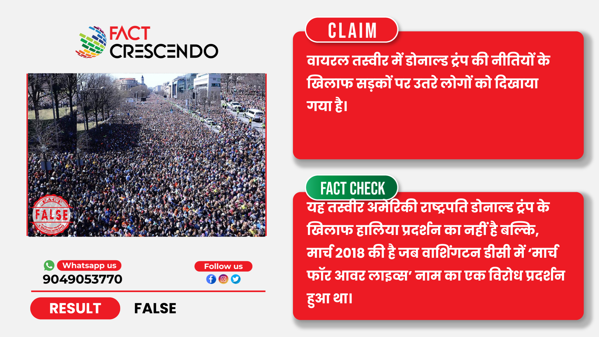 Title:2018 में हुए अमेरिका में प्रदर्शन की पुरानी तस्वीर, ट्रंप की नीतियों के खिलाफ हालिया विरोध का बताकर भ्रामक दावे से वायरल…