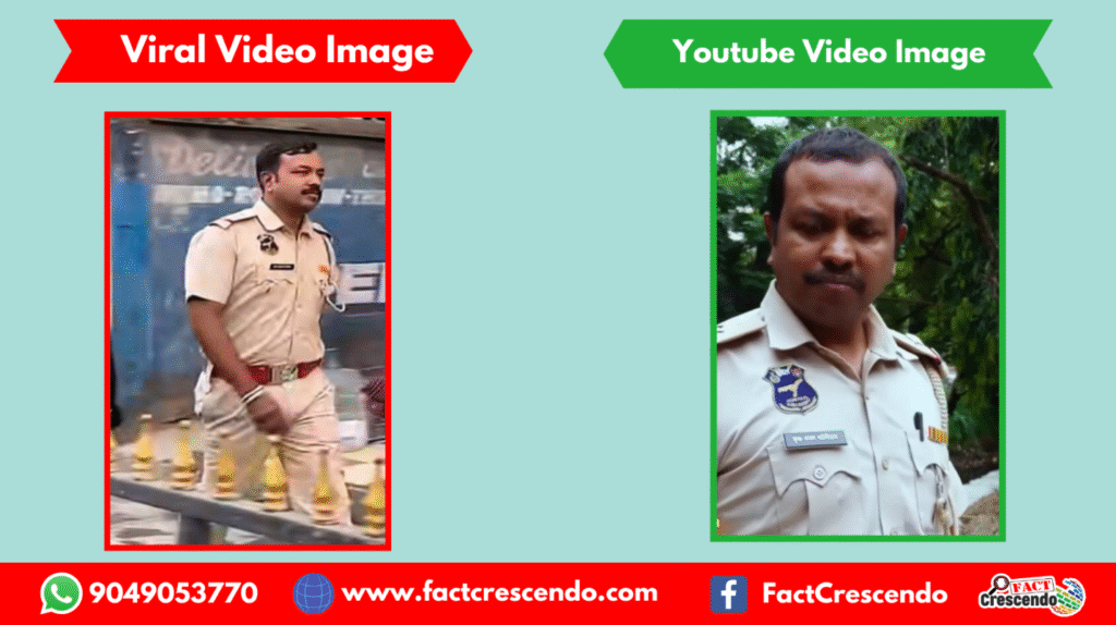 हमने वायरल वीडियो में दिख रहे पुलिस अधिकारी और हमें मिले वीडियो में दिख रहे पुलिस अधिकारी की तस्वीर का विश्लेषण किया। जिससे ये स्पष्ट होता है कि दोनों में एक ही व्यक्ति को दिखाया गया है, और वायरल वीडियो स्क्रिप्टेड है वास्तविक नहीं है।