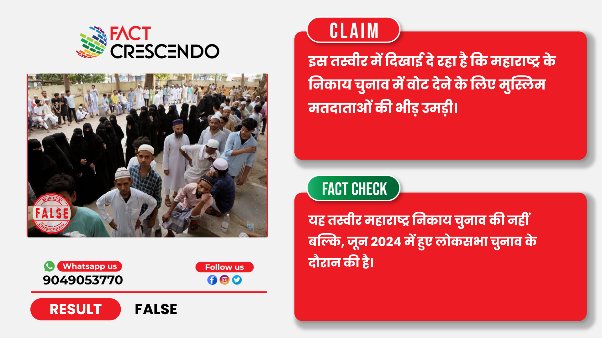 तथ्यों के जांच से यह पता चलता है कि, महाराष्ट्र निकाय चुनाव के नाम पर वायरल हो रही मुस्लिम मतदाताओं की तस्वीर असल में 2024 में हुए लोकसभा चुनाव के दौरान की है और वाराणसी की है।