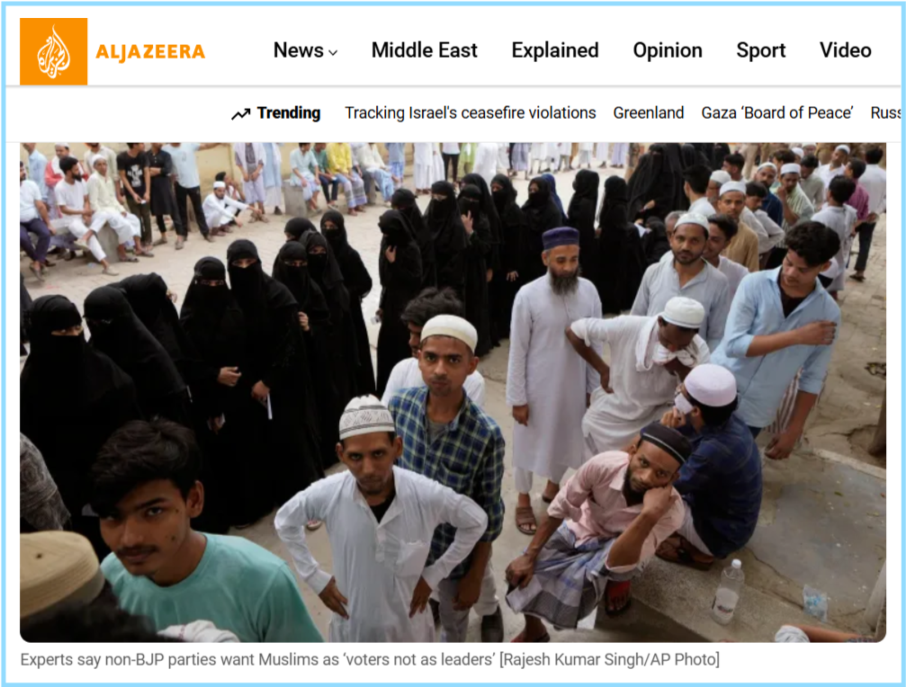 वहीं तस्वीर के साथ कैप्शन में लिखा था, “शनिवार, 1 जून, 2024 को भारत के वाराणसी में राष्ट्रीय चुनाव के सातवें और आखिरी चरण में वोट डालने के लिए मुसलमान लाइन में खड़े हैं। भारतीयों ने शनिवार को छह हफ़्ते तक चलने वाले राष्ट्रीय चुनाव के आखिरी चरण में वोटिंग शुरू की, जो हिंदू राष्ट्रवादी प्रधानमंत्री नरेंद्र मोदी के सत्ता में एक दशक के इतिहास पर एक जनमत संग्रह है। (AP फ़ोटो)”
