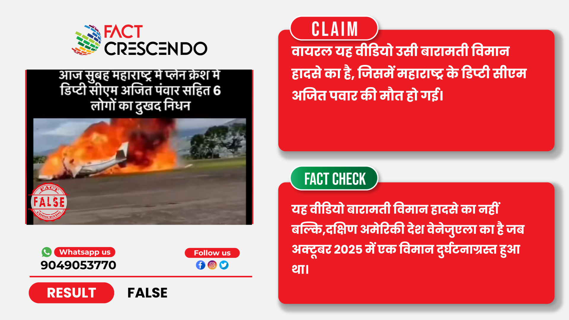 Title:वेनेजुएला के पुराने विमान हादसे का वीडियो अजित पवार के विमान हादसे के रूप में वायरल…