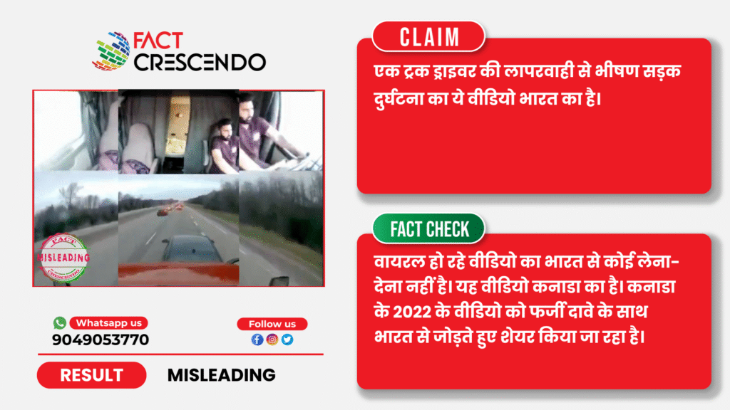 निष्कर्ष- तथ्य-जांच के बाद हमने पाया कि, 2022 में कनाडा में हुए एक सड़क हादसे के वीडियो को भारत का बताकर भ्रम फैलाया जा रहा है।