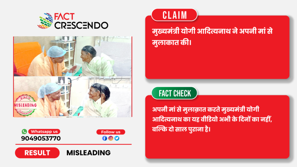 वायरल वीडियो के साथ यूजर ने लिखा है- अपनी मां से मिलने पहुंचे सीएम योगी आदित्यनाथ।”