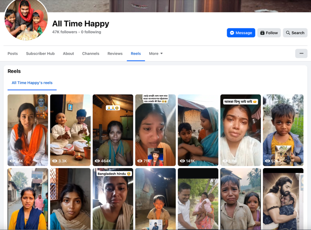वायरल वीडियो की सच्चाई जानने के लिए हमने सबसे पहले इस क्लिप को ध्यान से देखा और इसके कई की-फ्रेम्स निकाले। इसके बाद इन स्क्रीनशॉट्स को गूगल रिवर्स इमेज सर्च के जरिए सर्च किया। इस रिवर्स सर्च के दौरान हमें फेसबुक पर ‘All Time Happy’ नाम के एक पेज पर यही वायरल वीडियो मिला। जब हमने इस पेज की प्रोफाइल जानकारी की जांच की, तो पाया कि यह किसी ग्राफ़िक डिज़ाइनर का है, न कि किसी न्यूज़ संगठन, मानवाधिकार समूह या भरोसेमंद संस्था के रूप में। इसके अलावा, इस पेज पर बांग्लादेश में हिंदुओं की कथित स्थिति को लेकर कई इसी तरह के भावनात्मक और डर पैदा करने वाले वीडियो भी पोस्ट किए गए थे, जिससे पेज की विश्वसनीयता पर सवाल उठता है।