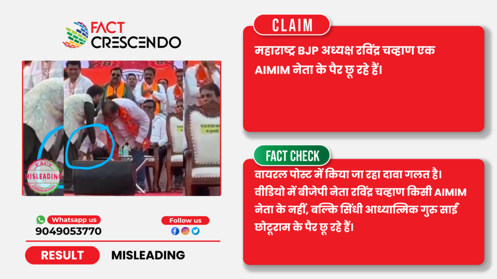 Title:भाजपा के रविंद्र चव्हाण ने नहीं छुए AIMIM नेता के पैर, ये व्यक्ति सिंधी उपदेशक है…