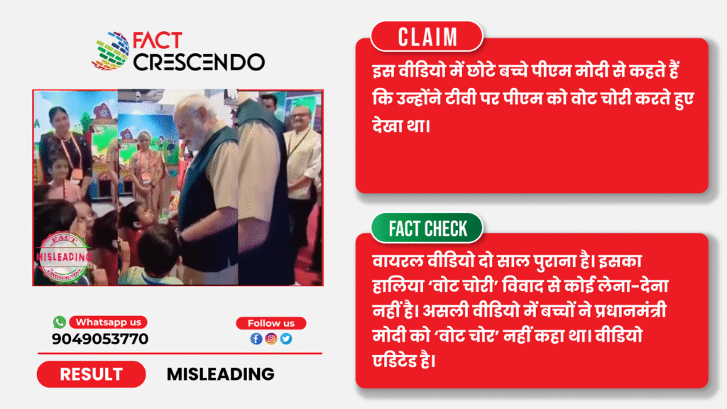 Title:पीएम मोदी को बच्चों ने नहीं कहा ‘वोट चोर’, एडिटेड वीडियो फर्जी दावे से वायरल..