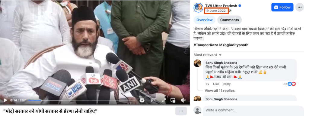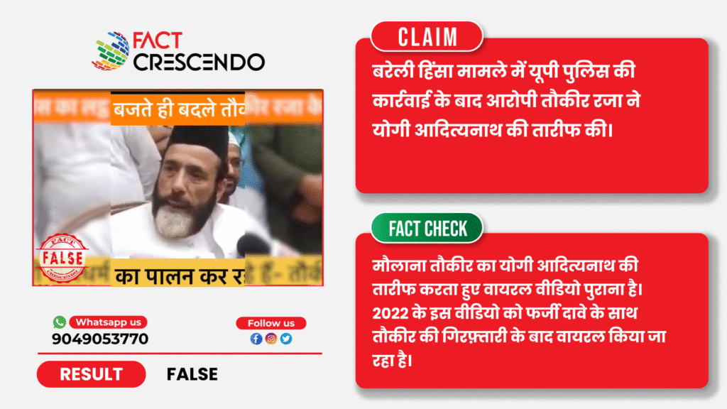 निष्कर्ष- तथ्य-जांच के बाद हमने पाया कि, मौलाना तौकीर का योगी आदित्यनाथ की तारीफ करता हुए वायरल वीडियो पुराना है। 2022 के वीडियो को  फर्जी दावे के साथ उनकी गिरफ़्तारी के बाद वायरल किया जा रहा है।
