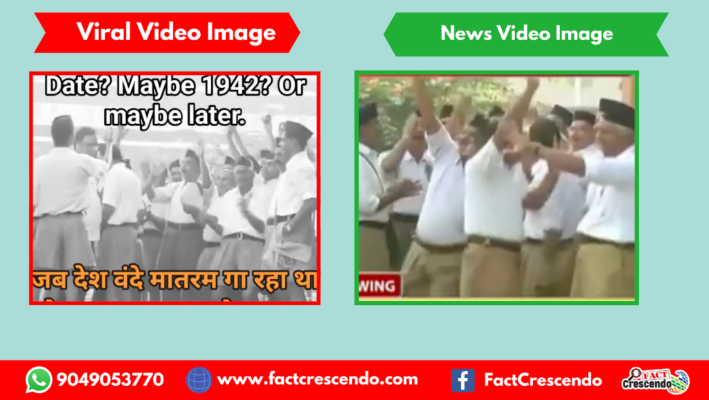 सोशल मीडिया पर 56 सेकंड का एक वीडियो तेजी से वायरल हो रहा है। जिसमें आज़ादी से पहले के दृश्य के रूप में दिखाया जा रहा है। सोशल मीडिया पर दावा किया जा रहा है कि क्लिप में दिख रहा ‘संघ कार्यकर्ताओं का यह डांस’ साल 1942 का है, जिसे बीबीसी के ‘आर्काइव फुटेज’ के रूप में जारी किया गया। वीडियो के साथ लिखा जा रहा है कि ‘जब पूरा देश आज़ादी की लड़ाई लड़ रहा था, तब आरएसएस वाले डांस कर रहे थे।