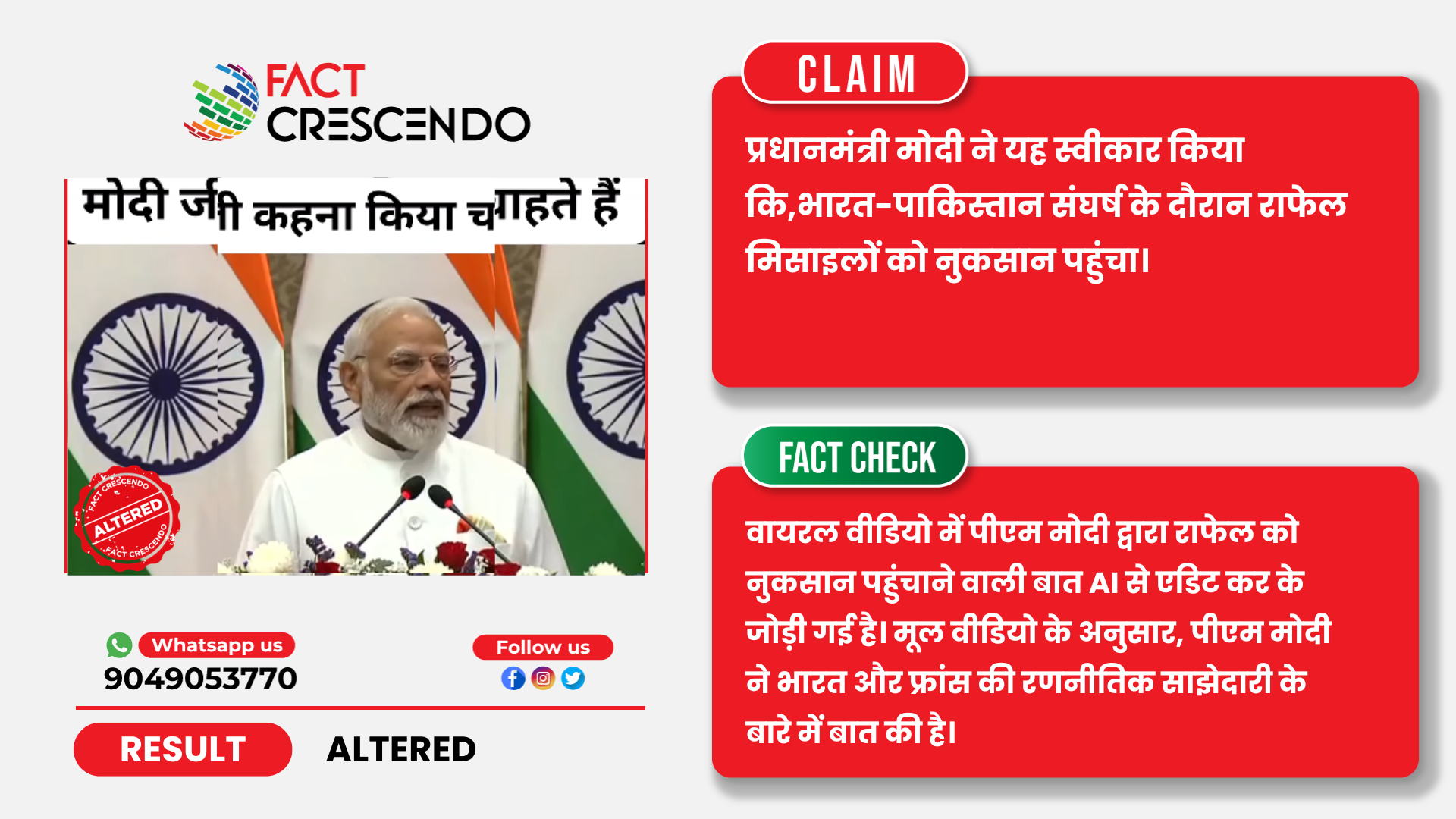 पीएम मोदी का राफेल लड़ाकू विमानों के नुकसान वाला वीडियो फर्जी, AI से एडिटेड क्लिप वायरल।