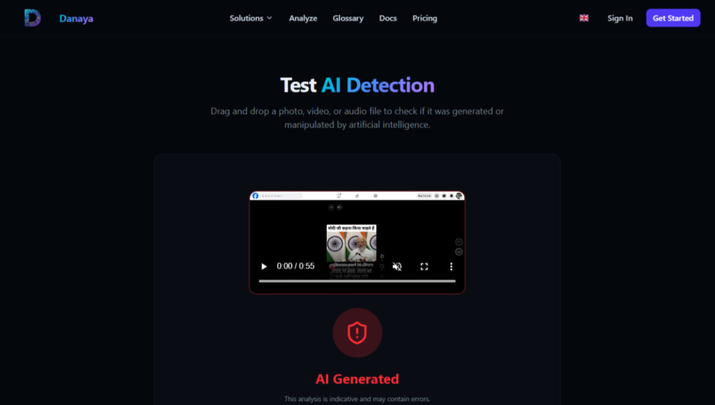 चूंकि वायरल वीडियो में ऑडियो और लिप-सिंकिंग में विसंगतिया दिखाई देने पर इसकी प्रामाणिकता की पुष्टि के लिए, हमने वायरल क्लिप को Danaya AI डिटेक्शन टूल पर अपलोड किया। हमें पता चला कि वीडियो AI द्वारा निर्मित है। यानी इस कार्यक्रम के वीडियो क्लिप में आवाज बदला गया और भ्रामक रूप में फैलाया गया।