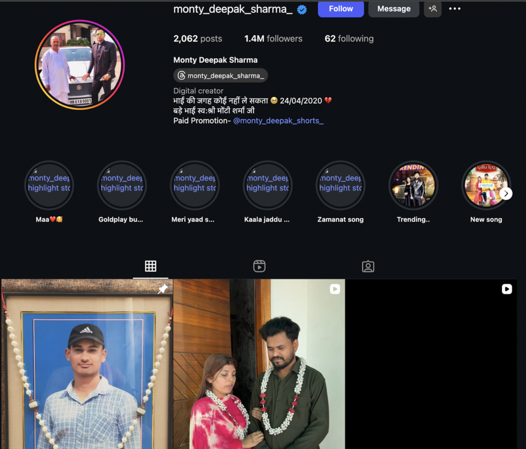 इस पेज पर दिए गए बायो के अनुसार, मोंटी दीपक शर्मा एक डिजिटल क्रिएटर हैं। इससे यह साफ़ हो जाता है कि वायरल वीडियो स्क्रिप्टेड है और किसी असली घटना को नहीं दिखाता है।