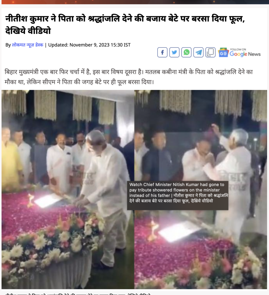 श्रद्धांजलि सभा में नीतीश कुमार के अपने बेटे पर फूल बरसाने का दावा फर्जी…..