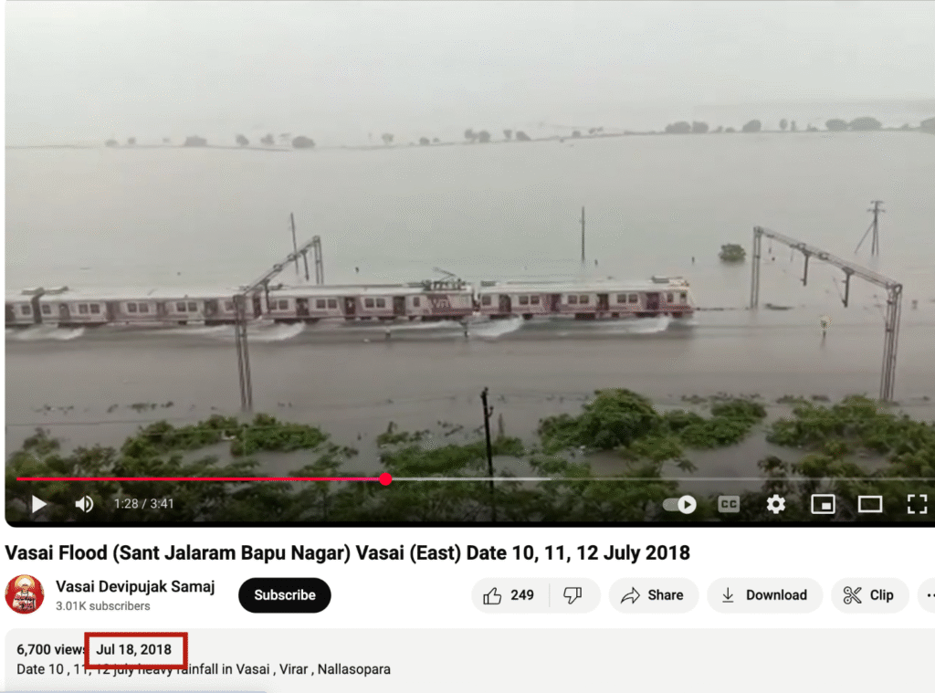 मौजूद जानकारी के मुताबिक, वीडियो मुंबई में नालासोपारा और वसई रोड के बीच रेलवे ट्रैक पर भरे पानी का है।