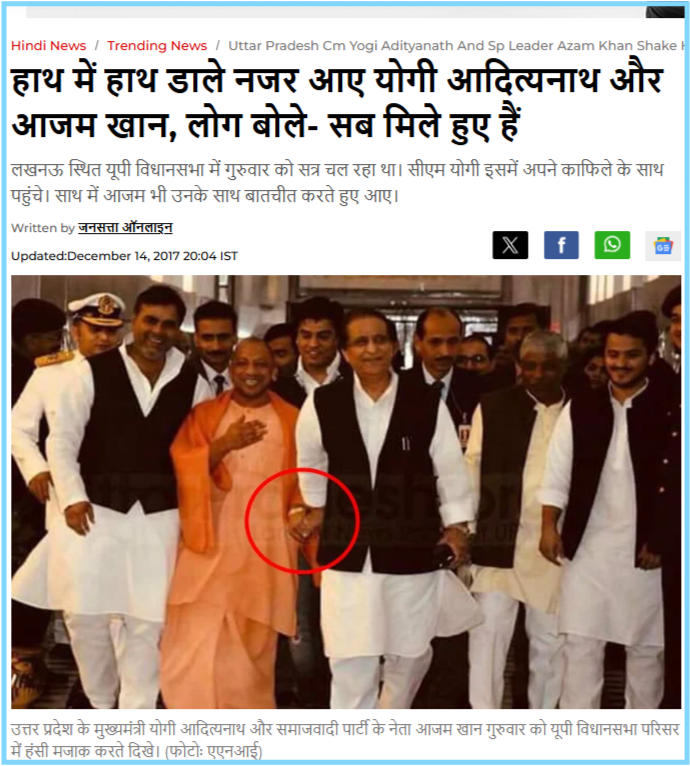 अब हमें इस पर मीडिया रिपोर्ट प्रकाशित की हुई मिली। इसमें जनसत्ता की बताती है कि, यह वीडियो यूपी विधानसभा के शीतकालीन सत्र के दौरान का है। उस समय मुख्यमंत्री योगी आदित्यनाथ सदन में सरकार का नेतृत्व करने जा रहे थे, और जैसे ही वे विधानसभा की गैलरी पहुंचे, आजम खान भी वहां मौजूद थे। इसी दौरान दोनों की मुलाकात हुई थी।