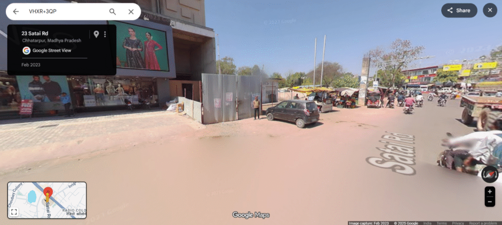 अंत में हमने वायरल वीडियो में दिख रहे जगह को और स्पष्ट करने के लिए गूगल मैप पर छतरपुर की सटई रोड के बारे में सर्च किया। परिणाम में हमें मॉल की हूबहू वहीं तस्वीर मिली।
