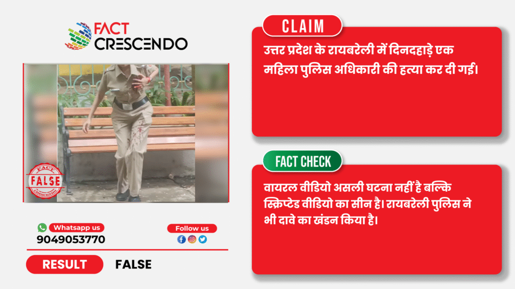 निष्कर्ष- तथ्य-जांच के बाद हमने पाया कि, वायरल वीडियो असली घटना नहीं है, बल्कि स्क्रिप्टेड वीडियो का सीन है। जिसके लिए रायबरेली पुलिस ने भी अपने एक्स पर इस दावे का खंडन किया है।