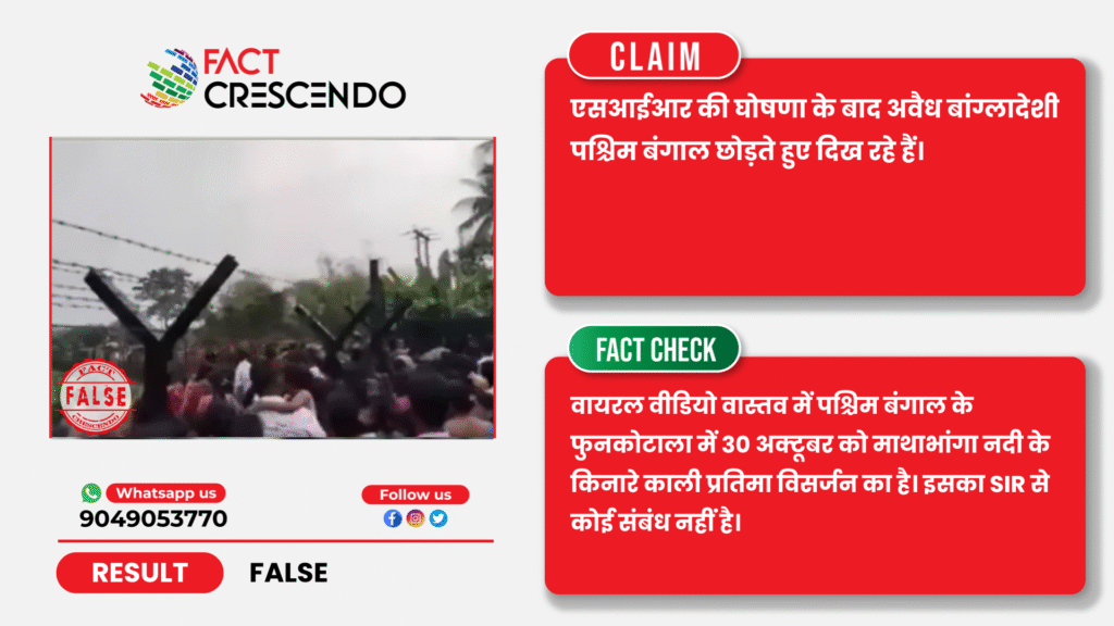 SIR अभियान के दौरान पश्चिम बंगाल से अवैध रूप से भागते बांग्लादेशियों का नहीं है यह वायरल वीडियो, काली प्रतिमा विसर्जन का है।