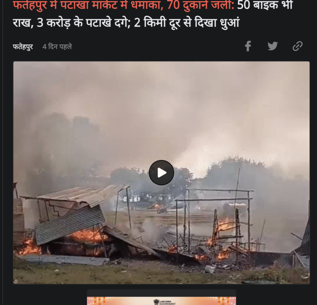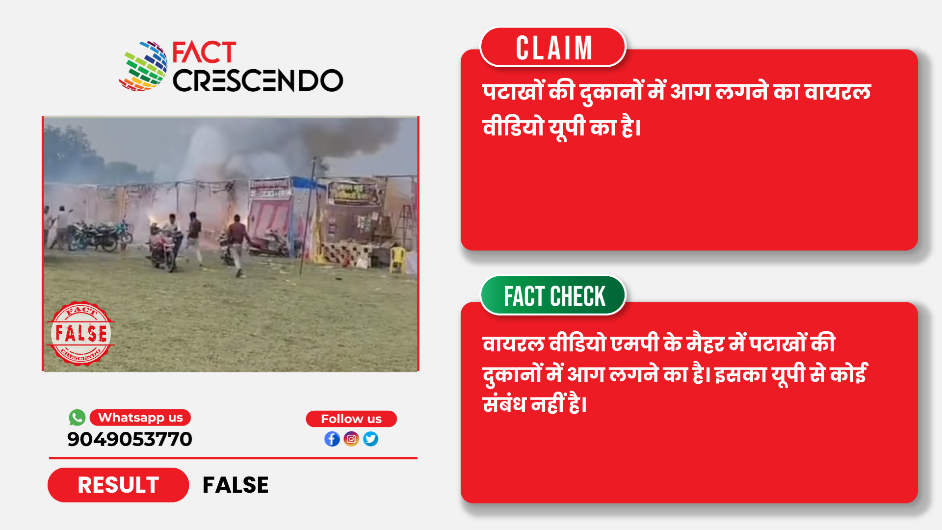 निष्कर्ष- तथ्य-जांच के बाद हमने पाया कि, वायरल वीडियो एमपी के मैहर में पटाखों की दुकानों में आग लगने का है। वीडियो का यूपी से कोई संबंध नहीं है।
