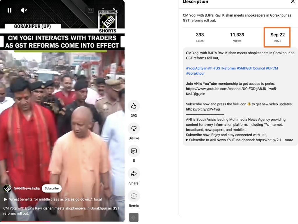 इन रिपोर्ट्स के अनुसार, असल में वीडियो में उत्तर प्रदेश के मुख्यमंत्री योगी आदित्यनाथ गोरखपुर में GST जागरूकता अभियान के दौरान दिख रहे हैं। उस समय वो सड़कों पर नए GST 2.0 सुधारों के फायदे समझा रहे थे, जो 22 सितंबर 2025 को लागू हुए थे और टैक्स स्लैब को दो बड़ी दरों, 5% और 18% तक कम कर दिया था।