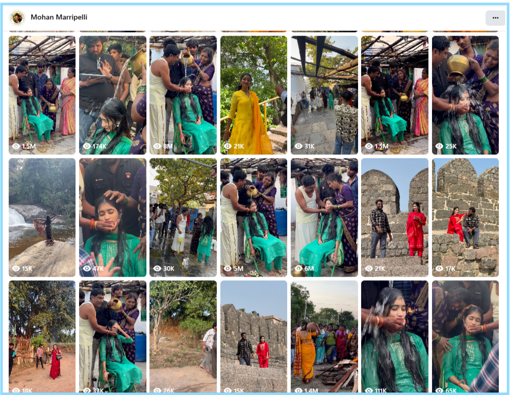हमने जांच की शुरुआत में वायरल तस्वीर को रिवर्स इमेज सर्च किया। परिणाम में हमें तेलुगु फिल्म इंडस्ट्री में काम करने वाले कलाकार Mohan Marripelli के फेसबुक पेज पर वायरल इसी तस्वीर से जुड़ी एक वीडियो मिली। वीडियो के साथ लिखे कैप्शन से यह पता चला कि यह एक गाने की शूटिंग है जिसका नाम ‘Idisi etta Vellave’ है। मोहन की फेसबुक बायो के मुताबिक वे एक फिल्म लेखक, एक्टर और डायरेक्टर हैं।
