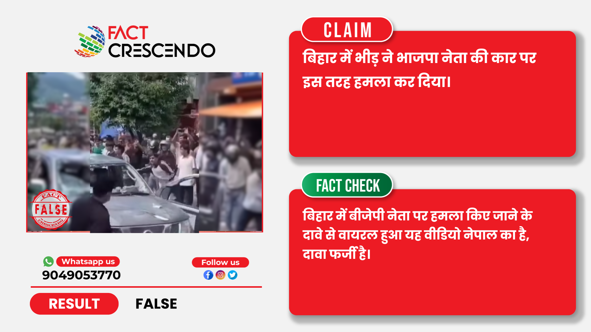 तथ्यों के जांच से यह पता चलता है कि, वायरल वीडियो के साथ बिहार में भाजपा नेता पर हमले का फेक दावा किया गया है। असल में यह वीडियो नेपाल का है, जब जेन-ज़ी आंदोलन के दौरान विरोध प्रदर्शन हुए थें। ऐसे में वायरल दावा झूठा साबित होता है।