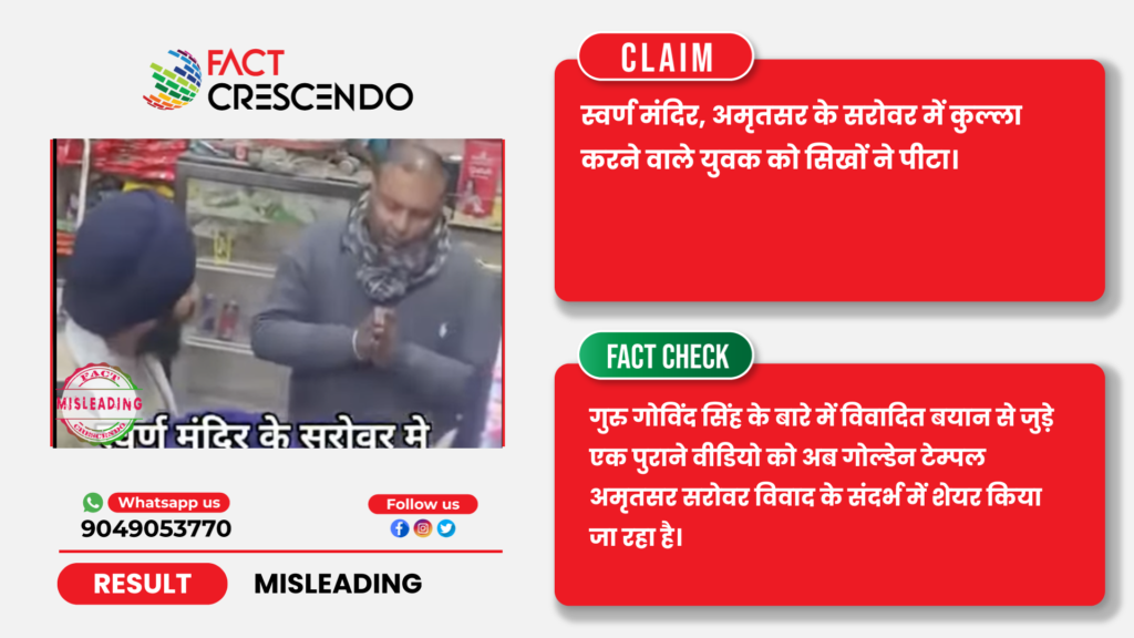निष्कर्ष- तथ्य-जांच के बाद हमने पाया कि, गुरु गोविंद सिंह के बारे में विवादित बयान से जुड़े एक पुराने वीडियो को अब गोल्डेन टेम्पल अमृतसर सरोवर विवाद के संदर्भ में शेयर किया जा रहा है।